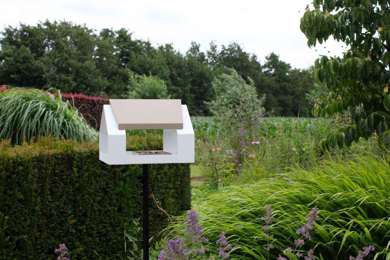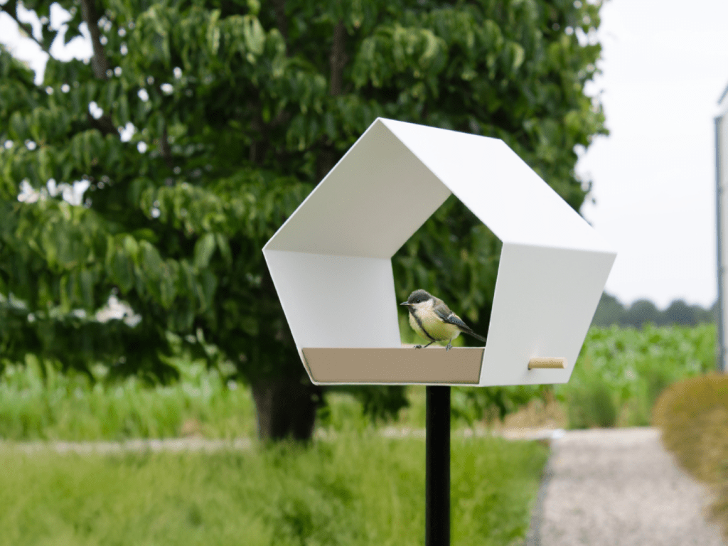 Van een strak voederhuis op paal tot een elegante voederschaal voor aan de schutting: onze producten zijn gemaakt van duurzame materialen zoals gepoedercoat metaal, cortenstaal, bamboe en gerecycled kunststof.